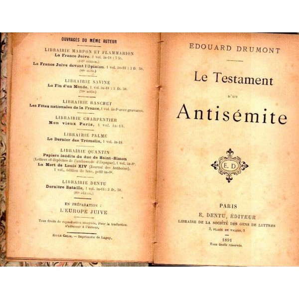 Édouard Drumont : Le Testament d'un Antisémite